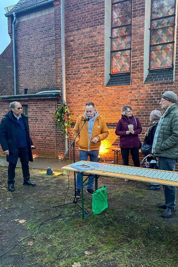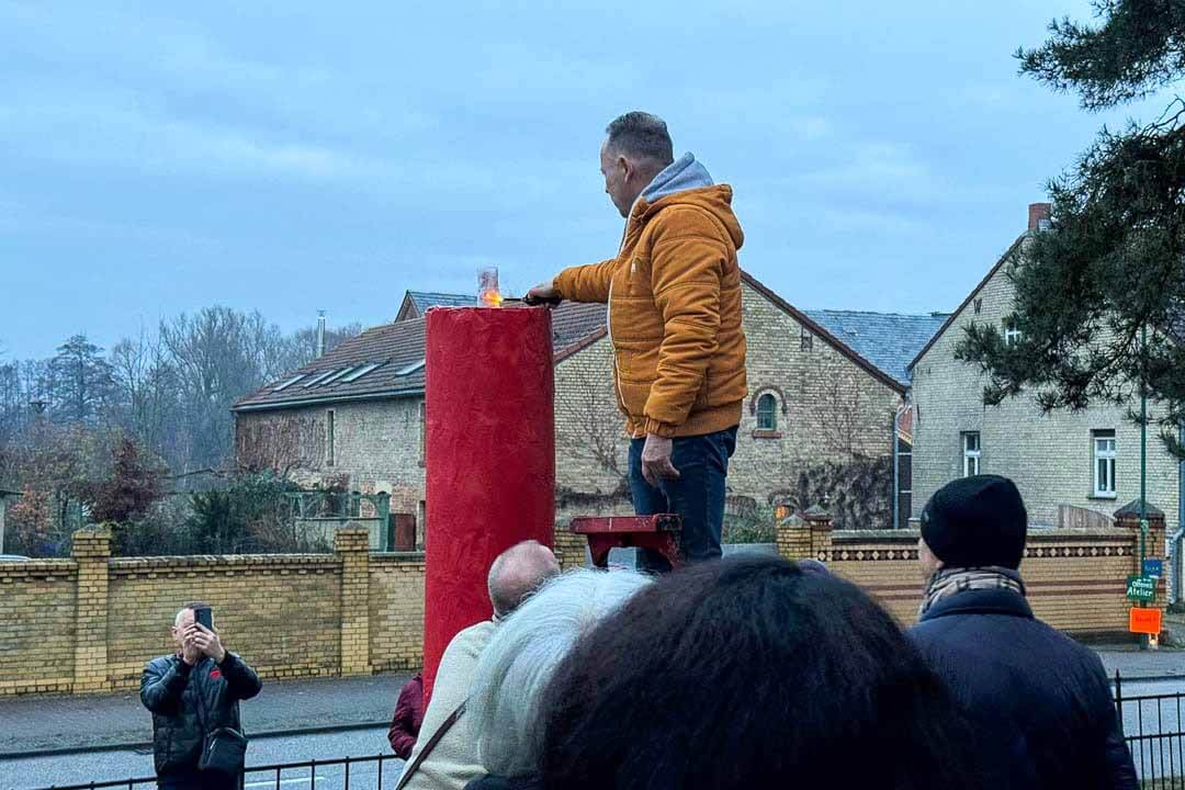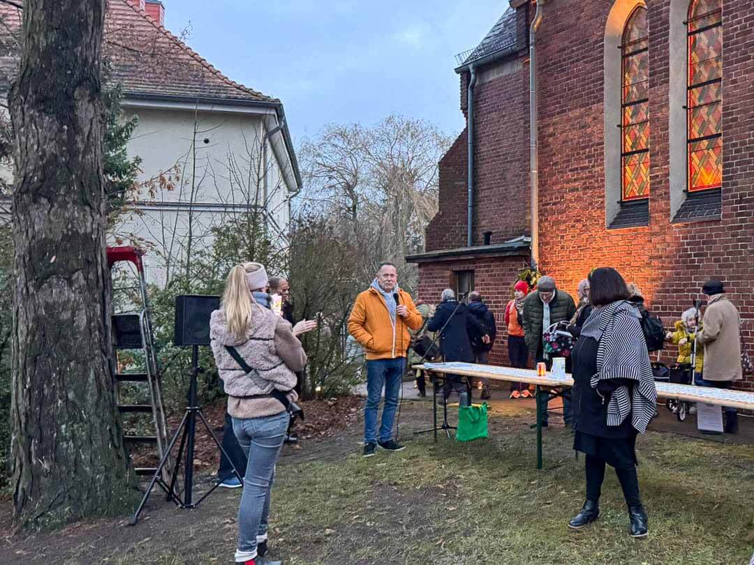 Nach dem Adventskonzert um 16:00 Uhr strömten zahlreiche Besucher aus der Kirche und versammelten sich vor der Kerze. Wolfgang hielt eine kurze Ansprache, bevor er die Adventskerze Schildow Kirche 2025 feierlich entzündete. Der Moment war geprägt von Stille, Besinnung und einem tiefen Gefühl von Gemeinschaft.