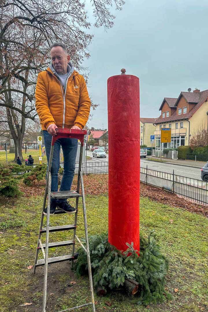 Die Adventskerze Schildow Kirche 2025 wurde in diesem Jahr erneut zu einem bewegenden Gemeinschaftserlebnis. Schon am Vortag stellte Wolfgang die große Kerze vor der Kirche in Schildow auf – jenes besondere Symbol, das jedes Jahr als stilles Zeichen gegen den Hunger in der Welt entzündet wird. Entstanden ist sie aus vielen gespendeten Wachsresten, die gemeinsam ein neues, kraftvolles Licht ergeben.